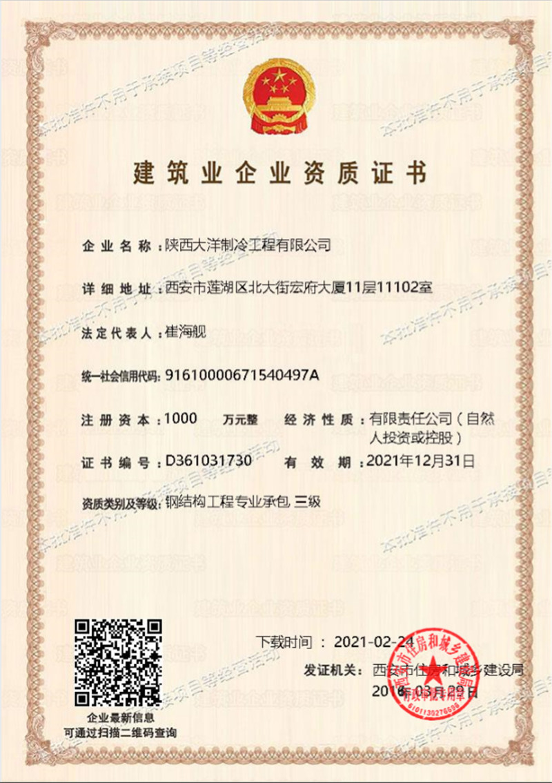 山東大洋制冷 · 資質(zhì)證書